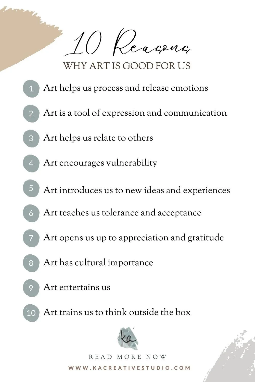 There’s probably a never ending list of why we can all benefit from the arts but here’s a few to help encourage you to start prioritizing bringing the arts into your life.
